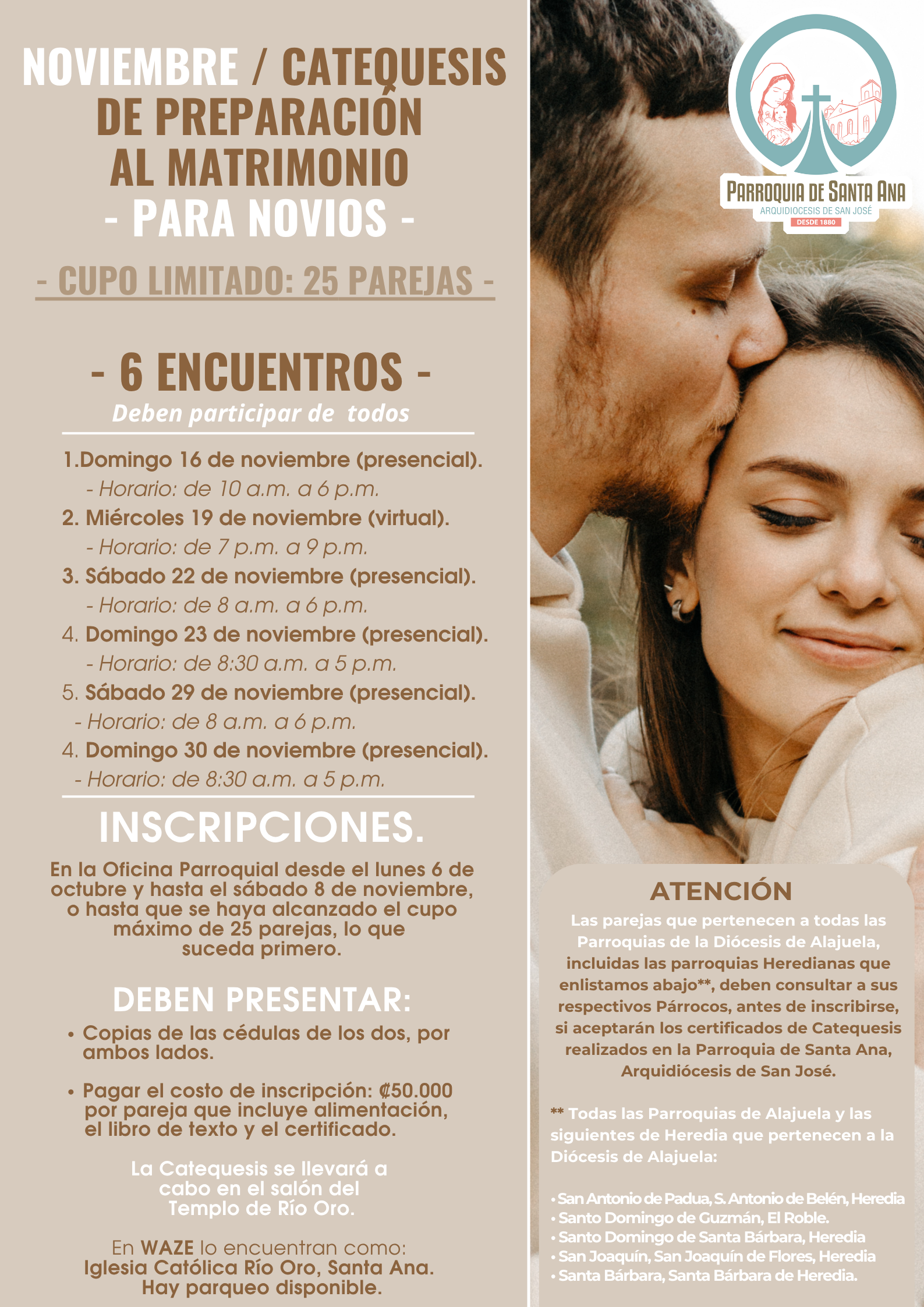 CATEQUESIS DE PREPARACIÓN AL MATRIMONIO PARA NOVIOS Y PAREJAS CON MÁS DE 5 AÑOS DE CONVIVENCIA Y SIN IMPEDIMENTO PARA CASARSE POR LA IGLESIA.